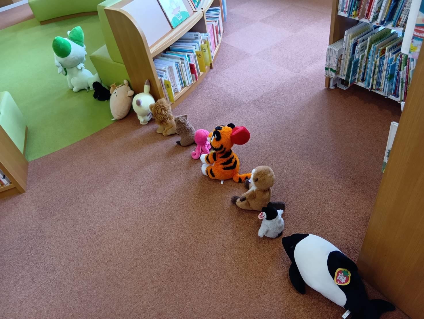 【ぬいぐるみのおとまり会 その0(~17時)】 ぞくぞく あつまる♪ みなさんの たいせつな ぬいぐるみたちが としょかんに あつまって きました。 どんどん どんどん しゅうごうだー♪♪ みんな なかよく あつまりました おとまり会まで もうすこし おまちください。 ・・・つぎは18時(よる6じ)ごろです。
