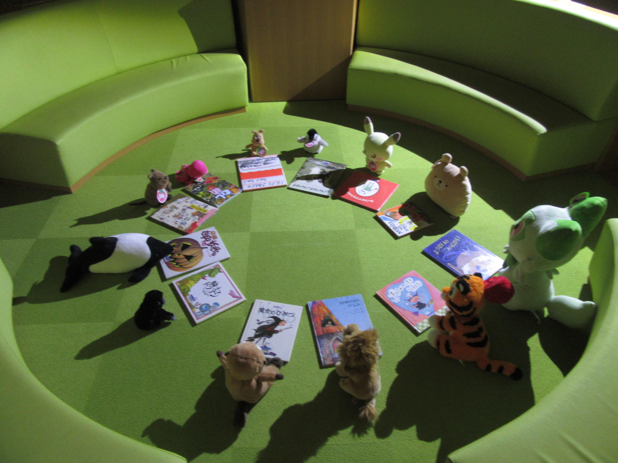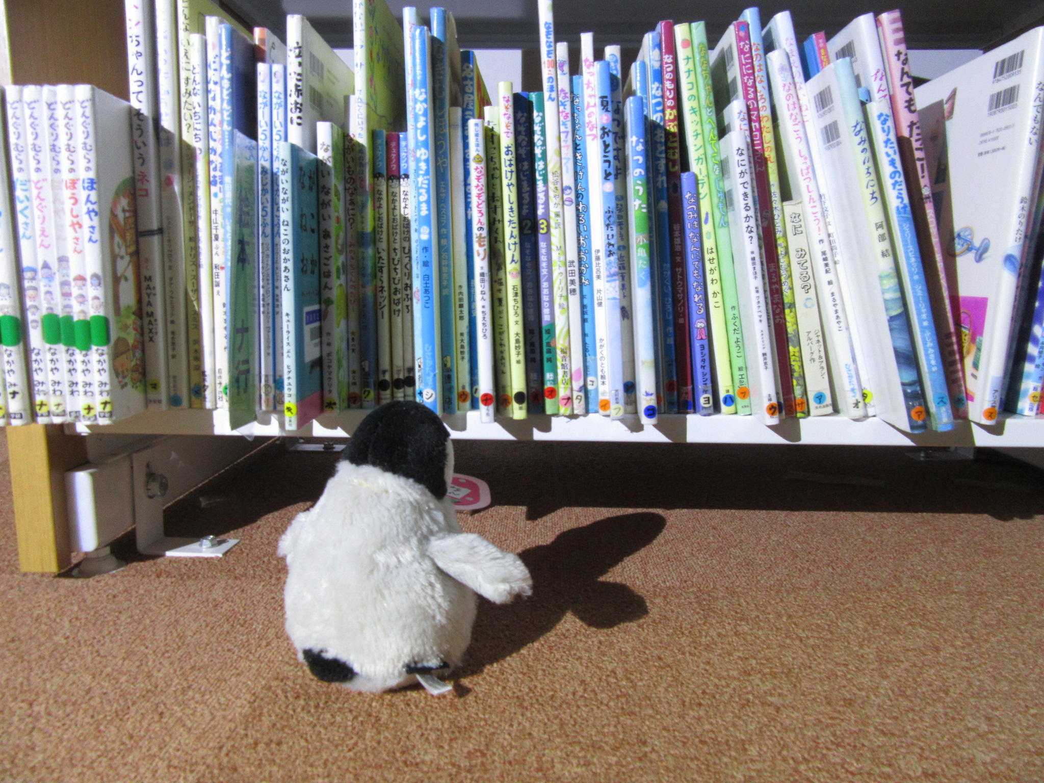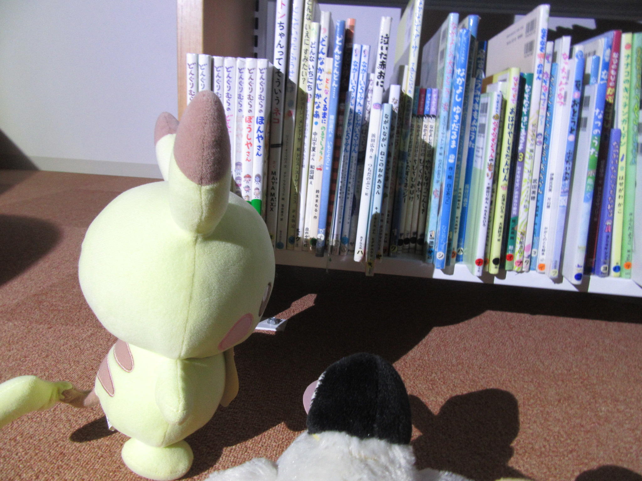 【ぬいぐるみのおとまり会 その3(20時)】 どのほん いいかな♪ どのほんがいいかな? ぬいぐるみたちが ほんを えらびます。 よるとしょかんにも あそびつかれて そろそろ みんなへの ほんを えらばなきゃ ①ニャオハちゃん も ②チャンドゥーちゃん も ③オスプーちゃん も ④ピカチュウちゃん も ⑤ペンちゃん も ⑥チーズちゃん も ⑦くまちゃん も ⑧オーちゃん も ⑨イルカちゃん も ⑩ライオンちゃん も ⑪カワちゃん も ⑫マッチョちゃん も すてきなほんを えらびます。 ・・・つぎは21時(よる9じ)ごろです。